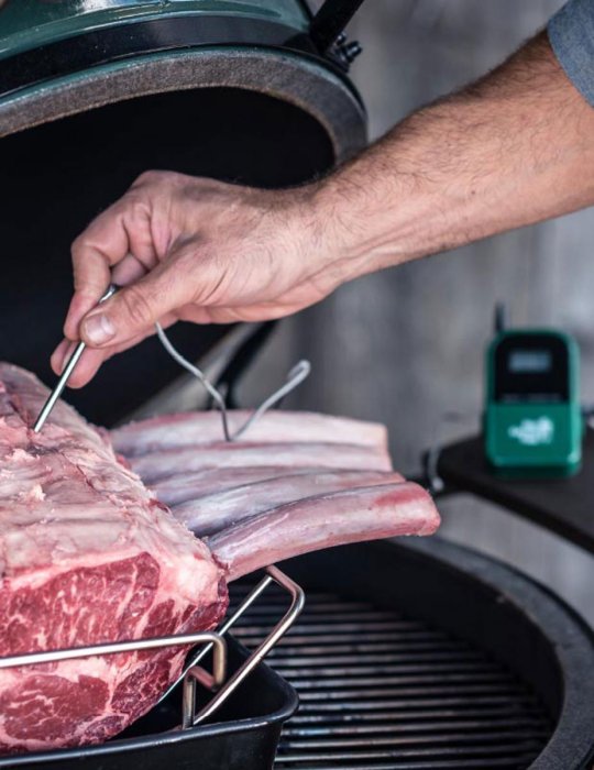 Daher empfiehlt es sich immer mit einem praktischen Grillthermometer Ihre Kerntemperaturen im Auge zu behalten, damit bei Abweichungen einfach eingegriffen werden kann. Damit man dafür aber nicht immer am Grill stehen bleiben muss, was vor allem bei Low & Slow Gerichten ein paar Stunden in Anspruch nehmen kann, bietet Big Green Egg sein praktisches Grillthermometer mit zwei Temperaturfühler an.