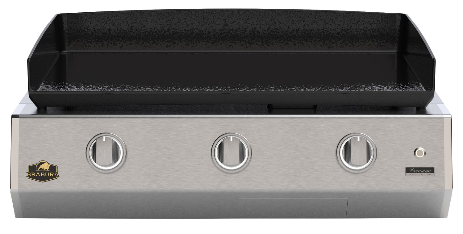 Der Brabura Planchagrill L Class Original 30 Plancha vereint professionelle Grillleistung mit einer hochwertigen Edelstahlverarbeitung. Mit seiner massiven, emaillierten Gusseisen-Plancha, drei leistungsstarken Brennern und gleichmäßiger Hitzeverteilung ist er die ideale Lösung für anspruchsvolle Outdoor Küchen, bei denen Flexibilität und Präzision im Fokus stehen. Ob scharfes Anbraten oder schonendes Garen, die Plancha liefert konstant perfekte Ergebnisse auf höchstem Niveau.