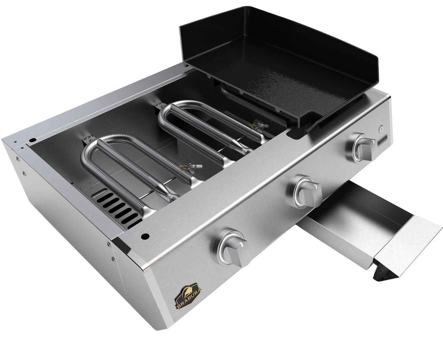 Drei Edelstahlbrenner mit jeweils 3,2 kW liefern eine Gesamtleistung von 9,6 kW und sorgen für schnelle Aufheizzeiten sowie konstante Temperaturen. Die separat regelbaren Brenner ermöglichen eine präzise Steuerung unterschiedlicher Temperaturzonen und eröffnen maximale Flexibilität bei der Zubereitung verschiedenster Speisen.
