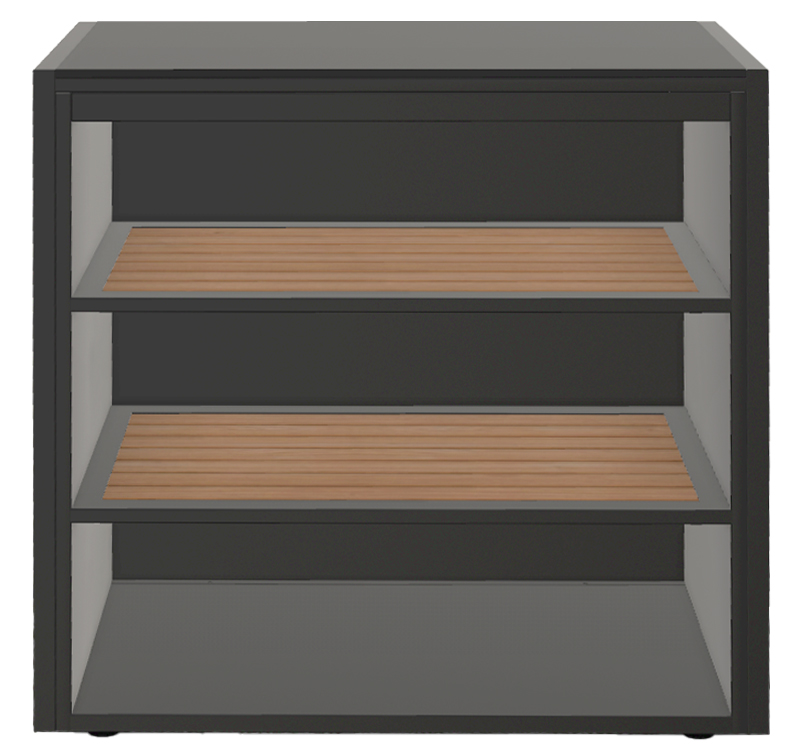 Das Brabura Outdoor Küche CT 90 Schrankmodul (offen) ist ein Außenregal und fügt sich perfekt in die kompromisslose Ausstattung der Brabura Outdoor Küche ein. Mit den 2 stabilen Regalfachböden und dem Korpus aus schwarz beschichtetem Edelstahl 304 erhält die Küchenzeile eine elegante Möglichkeit zur Aufbewahrung von Grillzubehör, Geschirr oder anderen Tools, welche ohne Barriere schnell zur Hand sein sollen. Die hochwertige Verarbeitung mit Neolith-Arbeitsplatte und die nahtlose Integration in die modulare Brabura Outdoor Küche machen das Küchenregal zur perfekten Ergänzung für anspruchsvolle Outdoor-Konzepte.