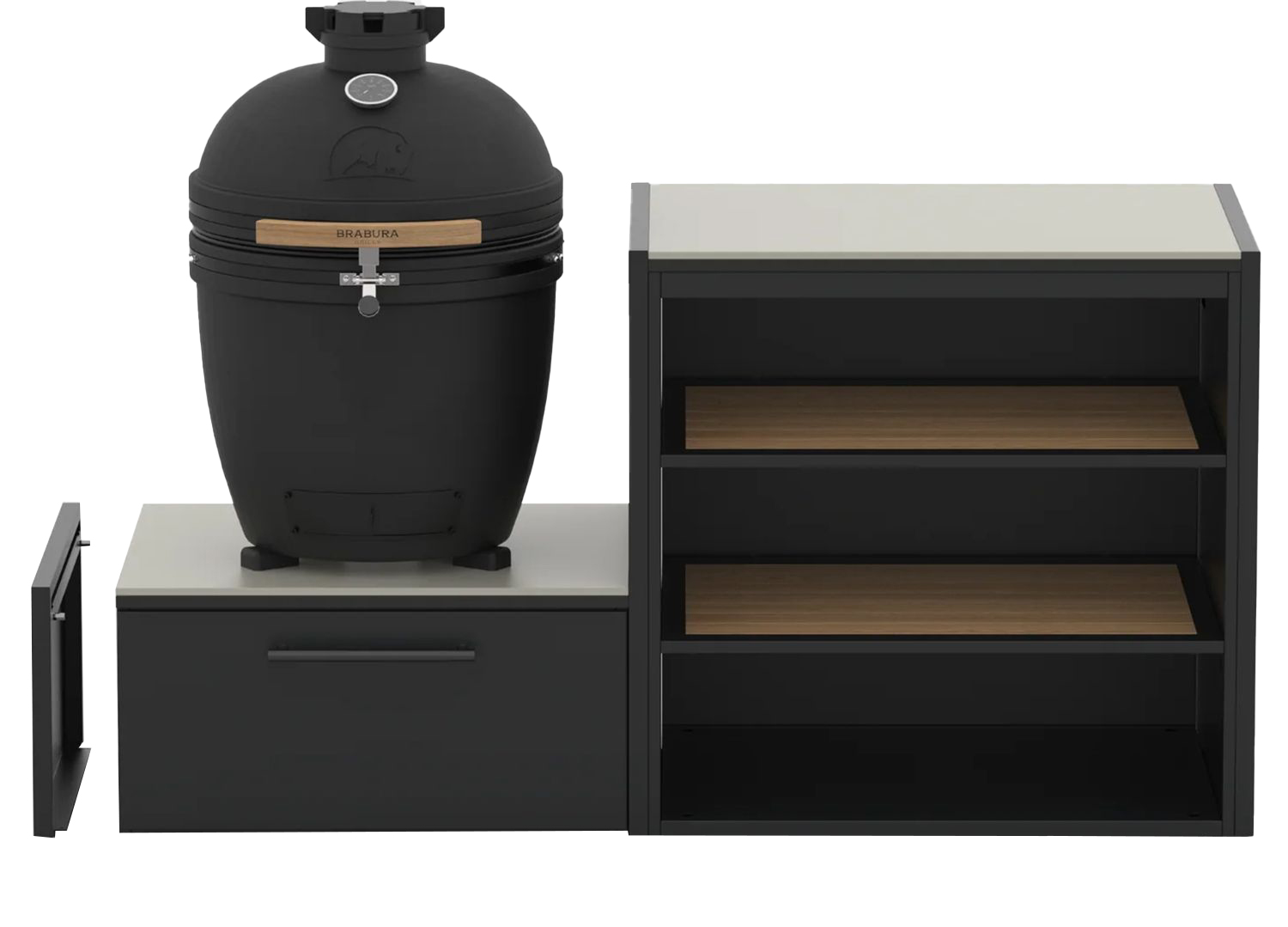 Die Abschlussplatte wurde exakt auf das Brabura CT 80 Kamado Modul abgestimmt und lässt sich passgenau und stabil montieren. Dadurch fügt sie sich perfekt in bestehende Outdoor Küchenlayouts ein und sorgt für eine durchgängige, architektonisch klare Linienführung.