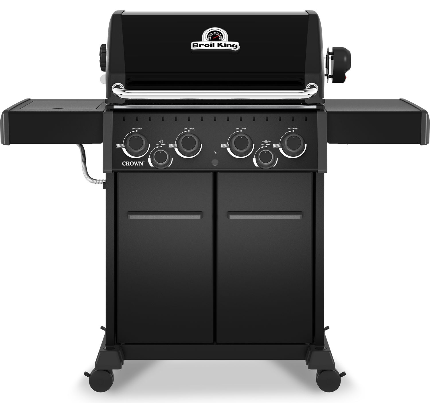 Die Sure Lite™ Elektrozündung sorgt für ein zuverlässiges Starten der Brenner. Schlauch und Druckminderer sind bereits im Lieferumfang enthalten, sodass der Broil King Crown 490 Shadow direkt einsatzbereit ist.