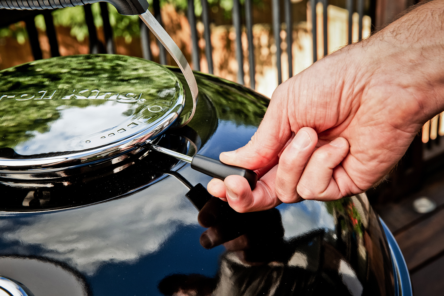 Das durchdachte Rotodraft™-Belüftungssystem ermöglicht eine präzise Steuerung des Luftstroms, um die Hitze im Garraum exakt abstimmen zu können - egal ob sie bei niedrigen Temperaturen Low-and-Slow-Garen oder bei maximaler Hitze ein Steak scharf anbraten möchten. Über den seitlich verstellbaren Schieber lässt sich die Abluft fein regulieren und so in Kombination mit der unteren Luftzufuhr die Temperatur im Grill gezielt steuern. Ein wesentlicher Vorteil des Rotodraft™-Systems ist die seitliche Positionierung der Lüftungsöffnungen. Diese Anordnung verhindert zuverlässig, dass beispielsweise bei Regen Wasser direkt in das Innere des Kugelgrills eindringen kann.