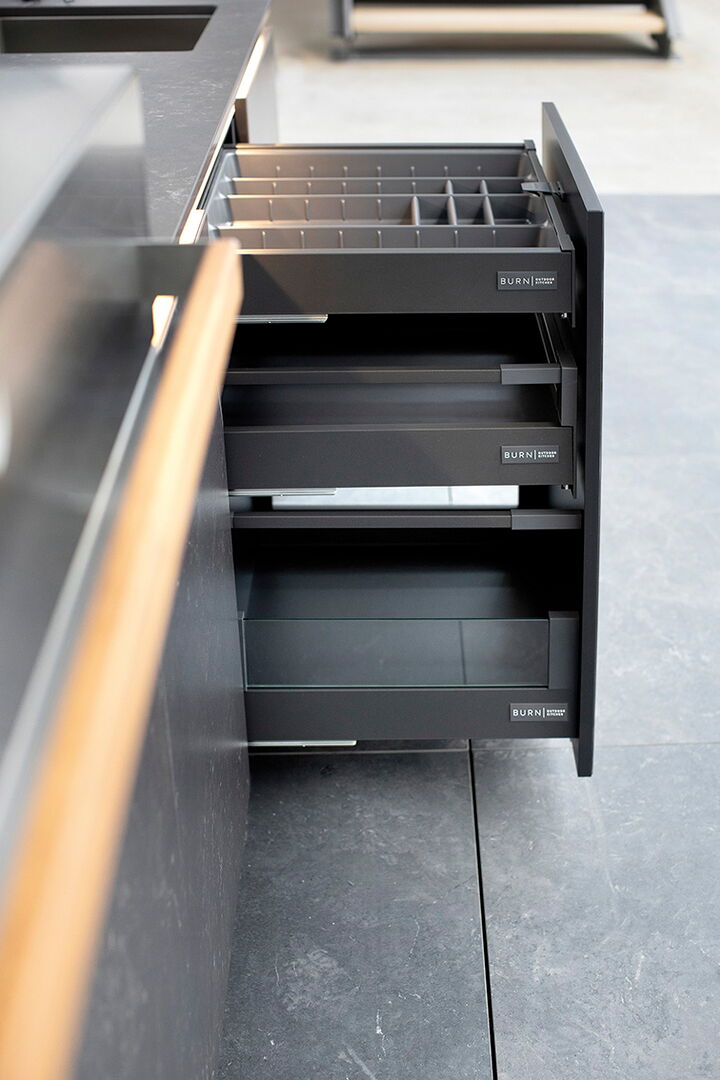 Gestalten sie den Stauraum ihrer BURN SOL Außenküche genau so wie sie es benötigen.