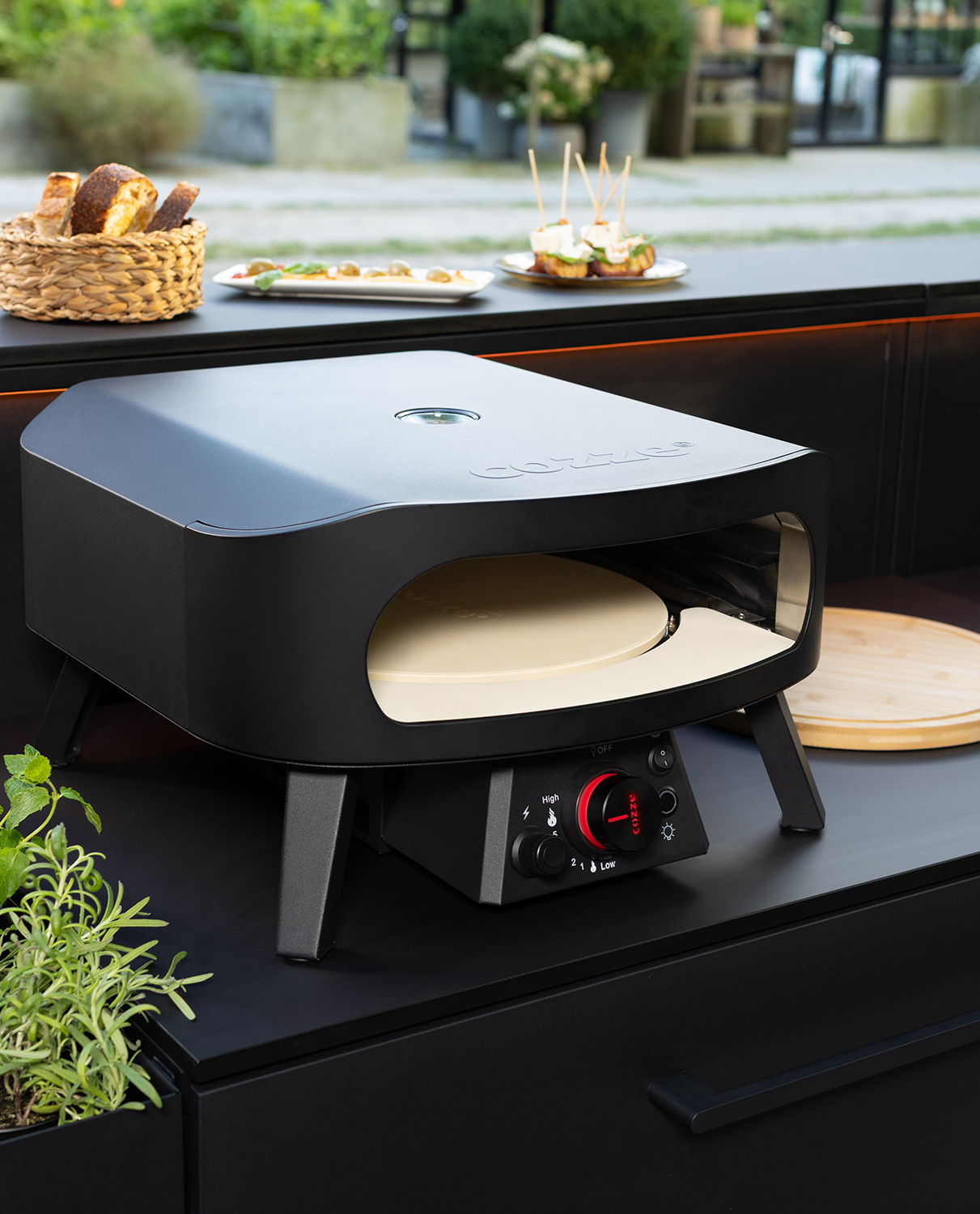 Perfekte Pizza dank rotierendem Pizzastein mit dem COZZE CLASSIC BLACK Gas Pizzaofen
