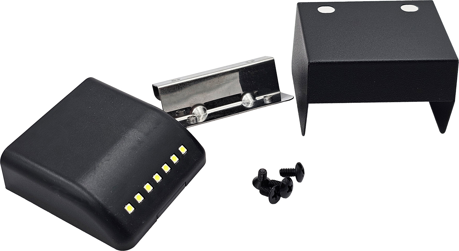 Das Beleuchtungs-Set wird komplett mit Leuchtmodul, Metallgehäuse und Befestigungsschrauben geliefert.