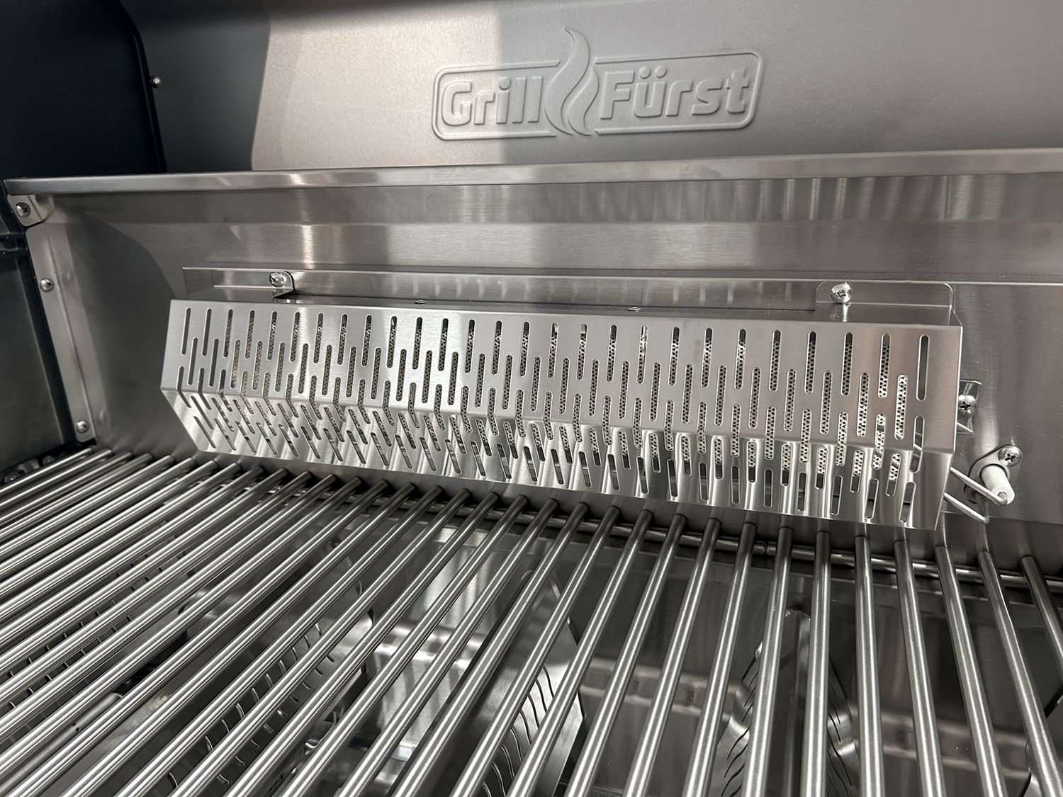 Ausgestattet mit 5 hochwertigen Edelstahlbrennern bietet der Independence Gasgrill nicht nur in der Bedienungsanleitung hohe Temperaturen! Bis zu 400°C am Grillrost sorgen auf der gesamten Grillfläche für satte Brandings. Um Fettbrand zu vermeiden, befindet sich über jedem der 5 Brenner ein extra dickes und stabiles Flammenschutzblech aus massivem 1,3 mm Edelstahl.