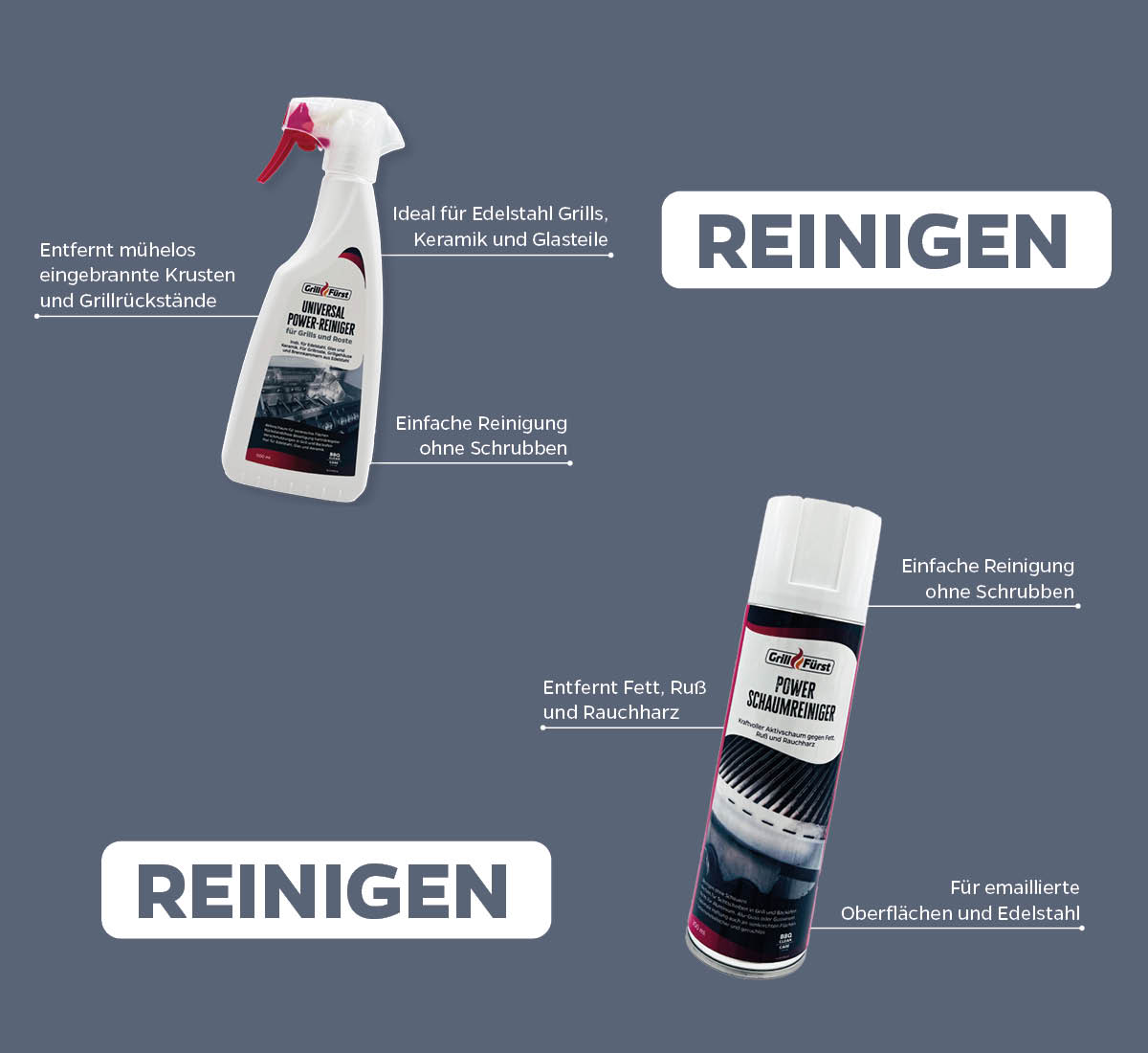 Das Grillfürst Rundum-sorglos-Paket hält damit die besten Grillreiniger für ein schnelles und einfaches Reinigen des Grills parat. Sparen sie sich unnötig aufwändige Reinigungsprozeduren oder die Suche nach einem geeigneten Grillreiniger für ihren Grill.