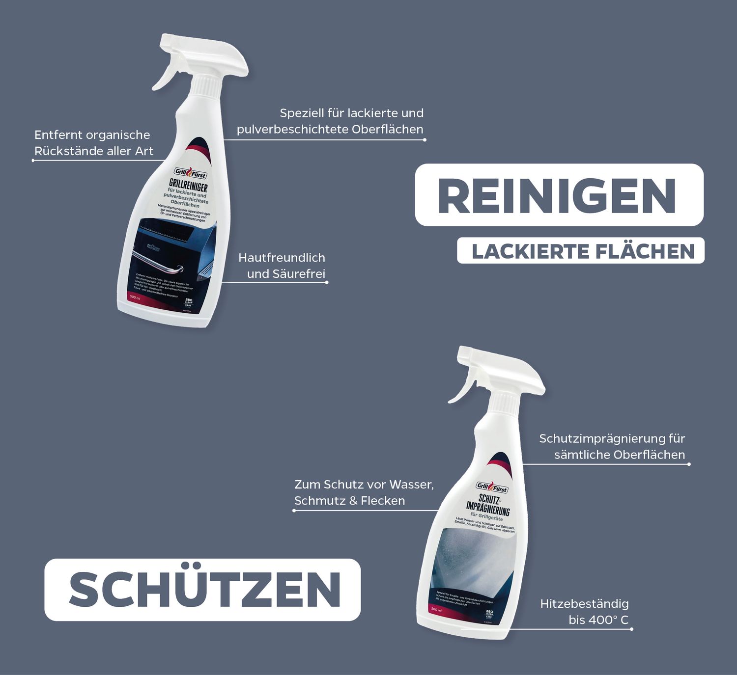 Grillfürst Schutzimprägnierung für Grillgeräte - 500 ml - hitzebeständig bis 400°C - mit Abperleffekt