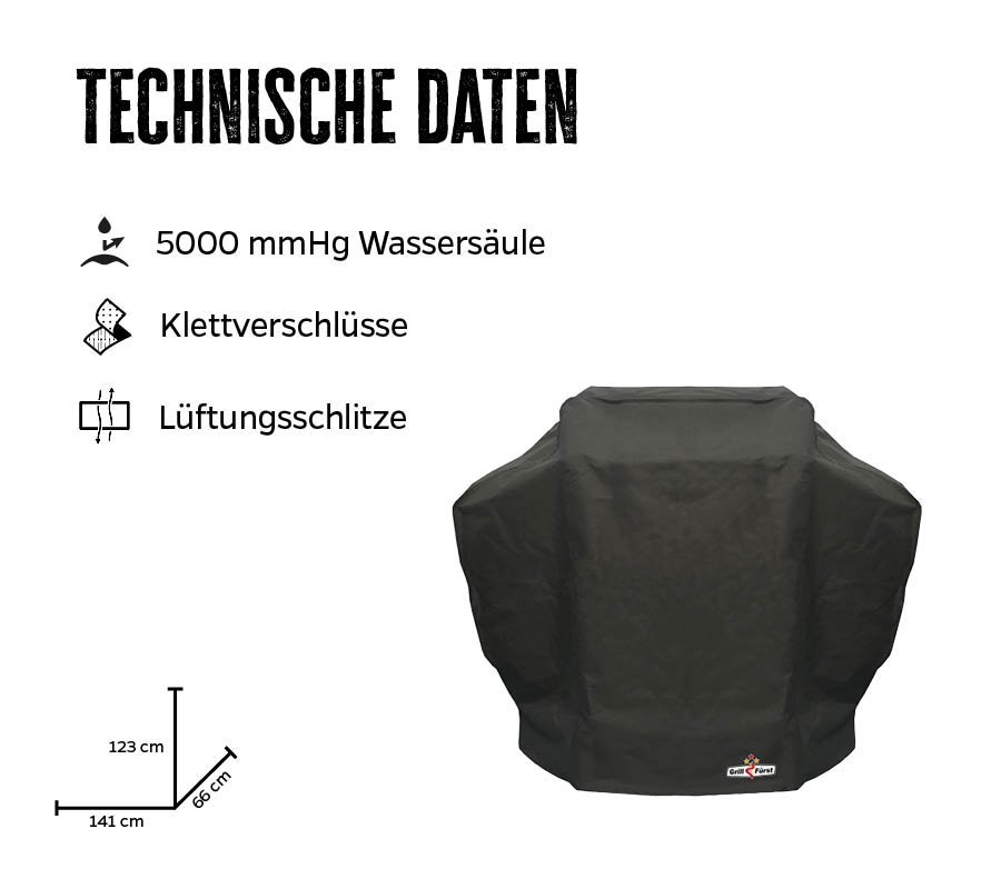 - Abmessungen: 141 x 66 x 123 cm - auch für viele weitere Grillmodelle nutzbar, siehe Tabelle wieter unten