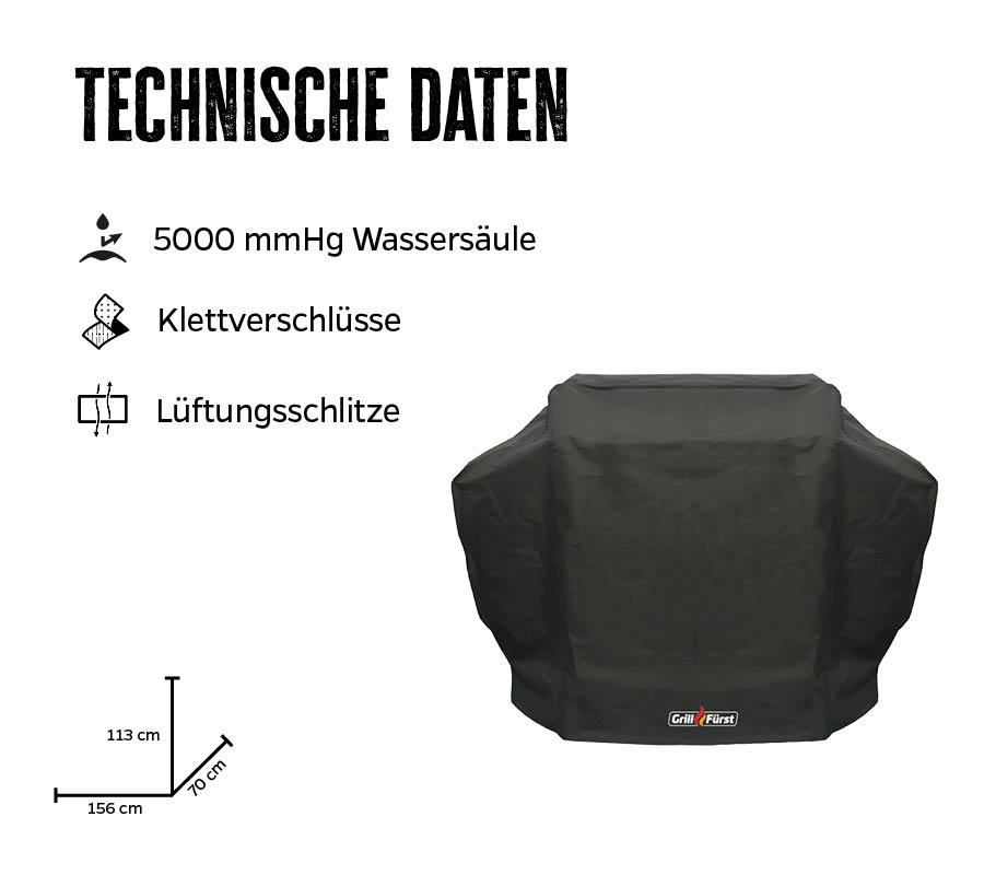 - Abmessungen: 156 x 70 x 113 cm - auch für viele weitere Grillmodelle nutzbar