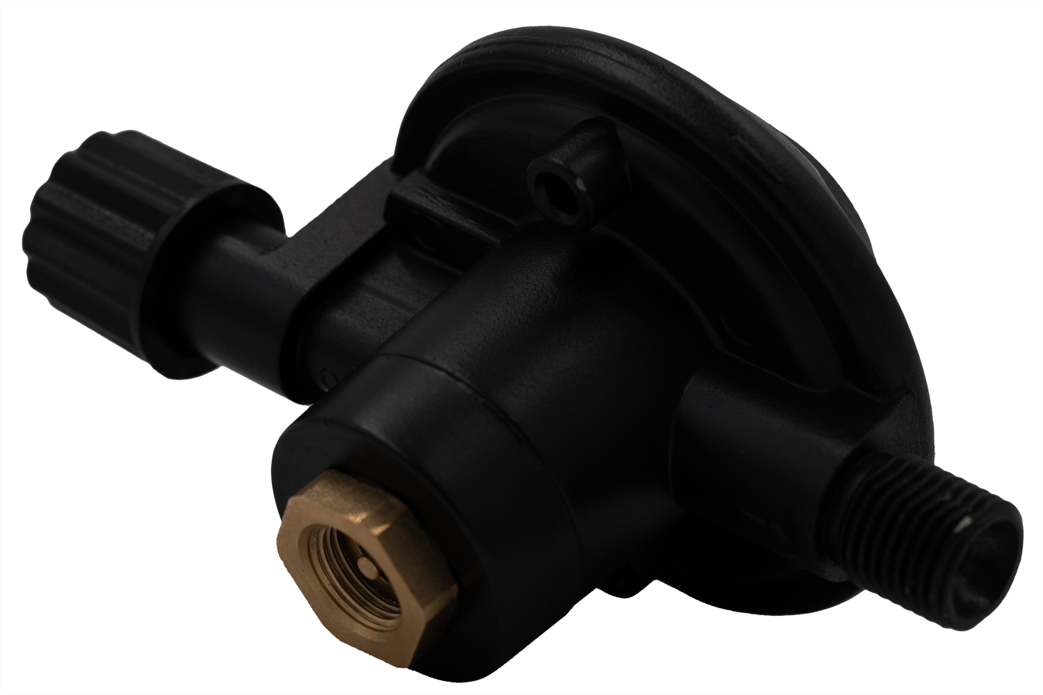 Grillfürst Einstufiger Druckminderer mit Absperrventil / 7/16" (Gaskartusche) x 1/4", 50mbar