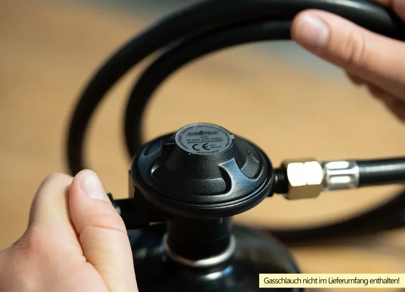 Dank Absperrventil lässt sich der Gasfluss manuell öffnen und schließen. So wird ein ungewollter Gasaustritt verhindert, wenn die Kartusche aufgeschraubt oder abgenommen wird oder das Gasgerät gerade nicht in Betrieb ist. Zusätzlich zum Druckminderer benötigen sie noch einen passenden Gasschlauch zum Betrieb ihres Gasgerätes.