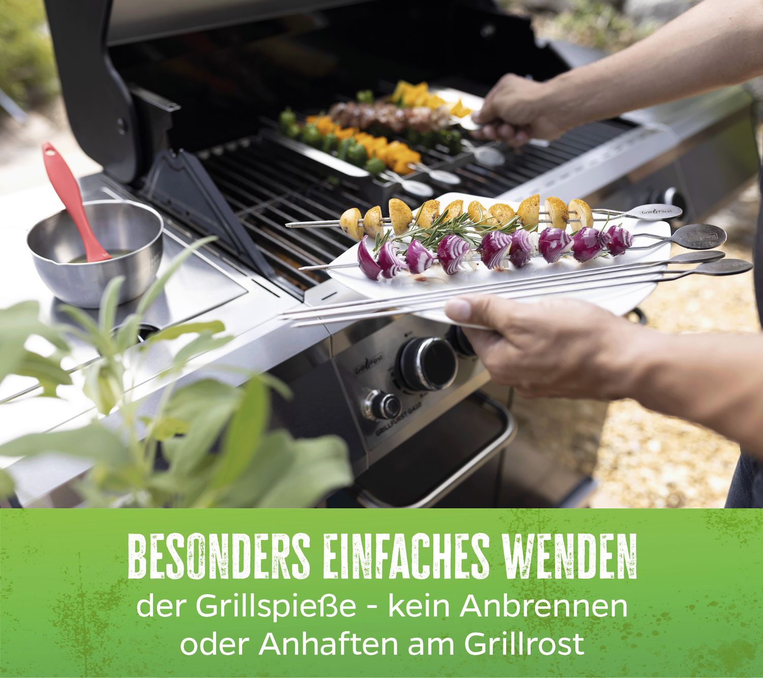 - Mit 6 Doppelspießen - verhindern das Verrutschen des Grillguts beim Wenden