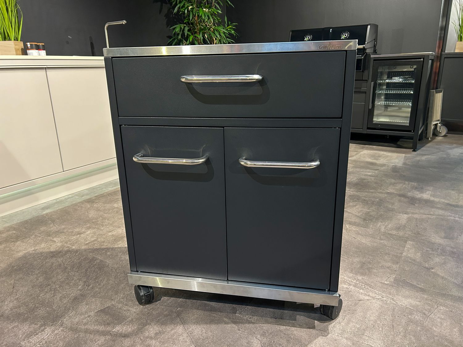 - Mobiler Grillschrank als Beistelltisch, Arbeitsfläche, Pizzastation, Servierwagen, Stauraum oder Buffet.