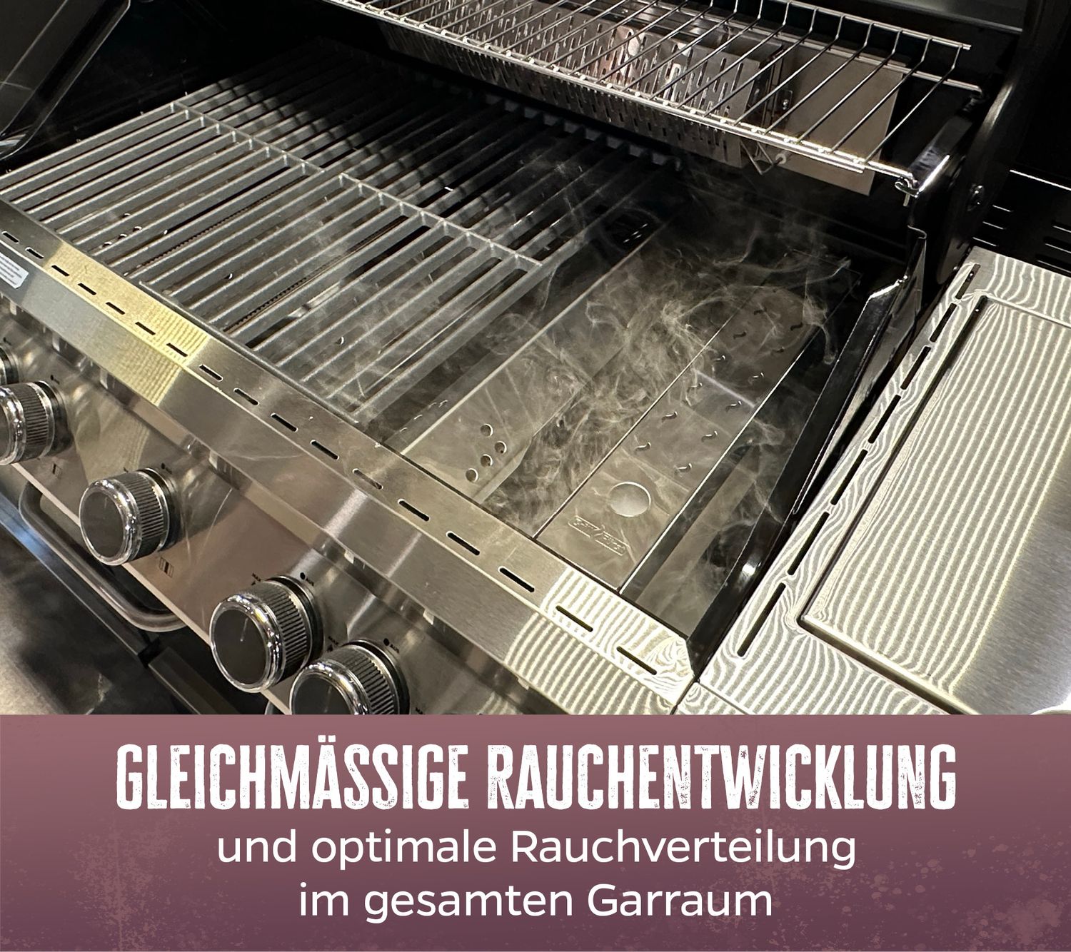 - Praktische Räucherbox zum platzsparenden Platzieren unter dem Grillrost - passend für Grillfürst Gasgrills