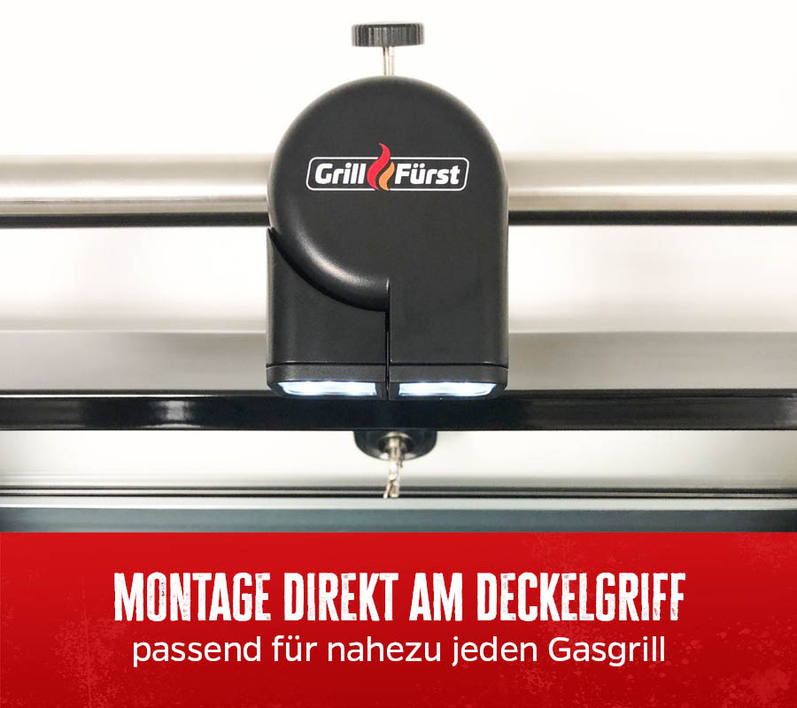 Die Grillfürst Universal Grilllampe ist das perfekte Upgrade für nahezu jeden Gasgrill! Die besonders helle Grillflächenbeleuchtung kann schnell und einfach am Deckelgriff nachgerüstet werden.