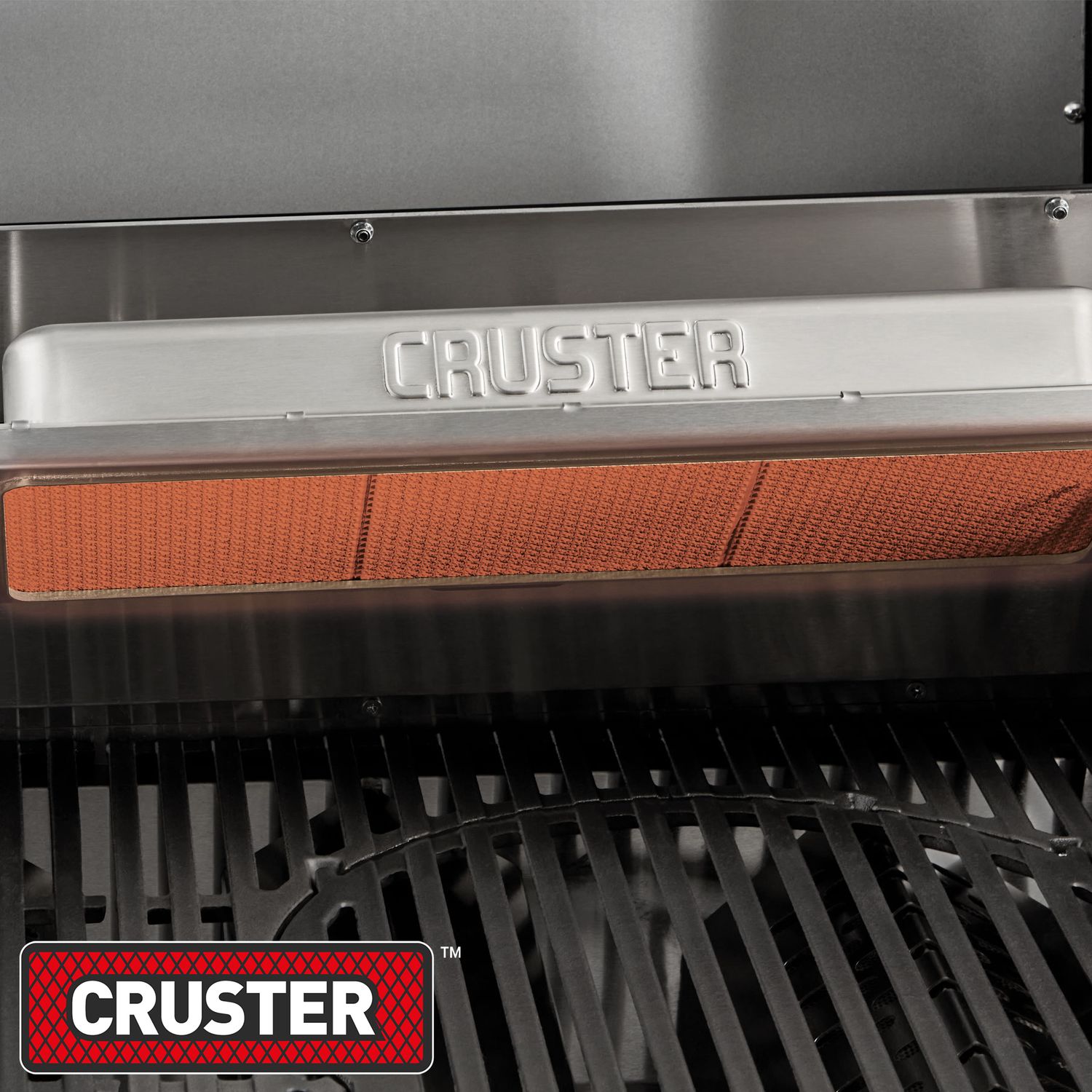 Einzigartig ist, dass sich der Cruster mit T-Knöpfen stufenlos in Höhe und Neigungswinkel verstellen und so in einen Oberhitze-Brenner verwandeln lässt - ideal zum Gratinieren, Karamellisieren und Überbacken der verschiedensten Speisen und für saftige Steak mit toller Kruste. Damit sorgt der Cruster für maximale Flexibilität beim Grillen auf dem Enders UNIQ Gasgrill.