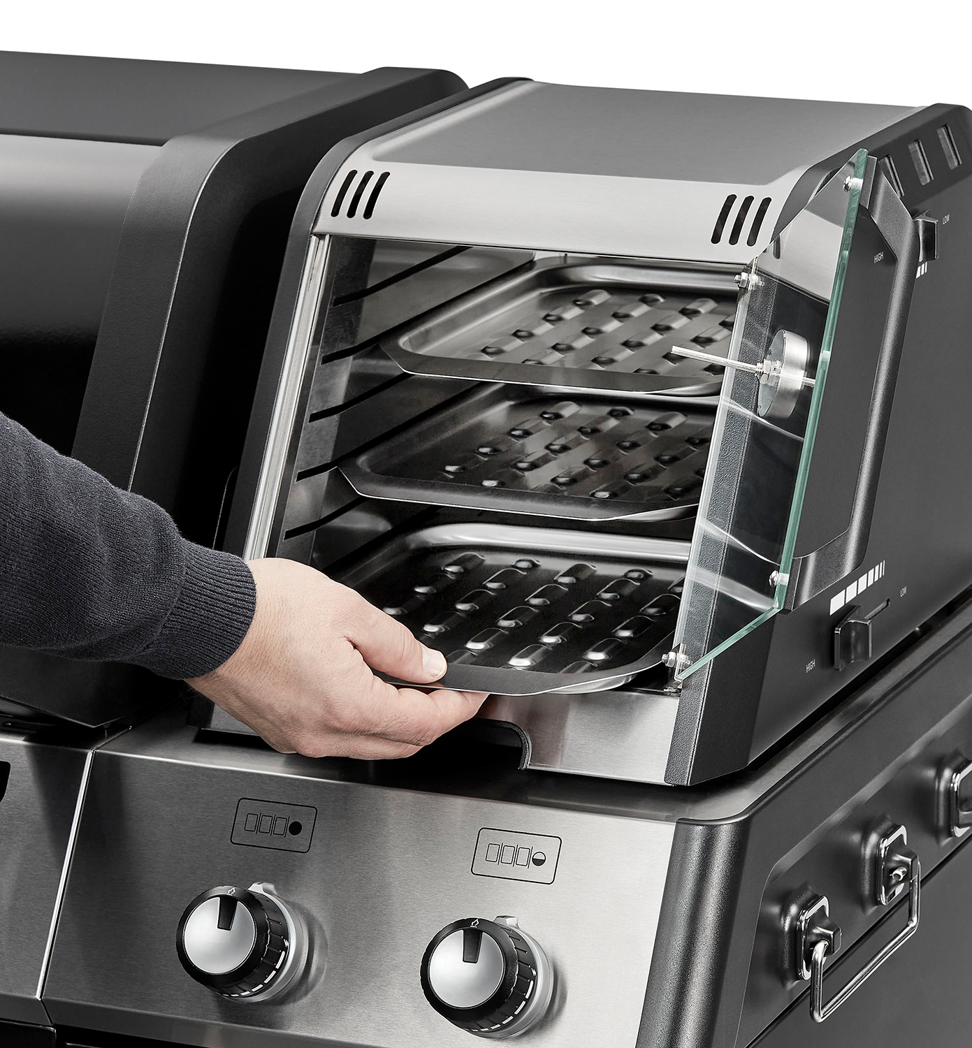Mit dem Delicater-Ofen lässt sich der Enders Uniq Pro 3 IK noch vielseitiger verwenden. Auf den 3 im Lieferumfang enthaltenen Einschiebblechen lassen sich bis zu 3 Fleischstücke gleichzeitig bei Temperaturen zwischen 80 und 150 °C garen. Die Grillfläche Ihres Uniq Pro Gasgrills bleibt dabei frei für andere Spezialitäten.