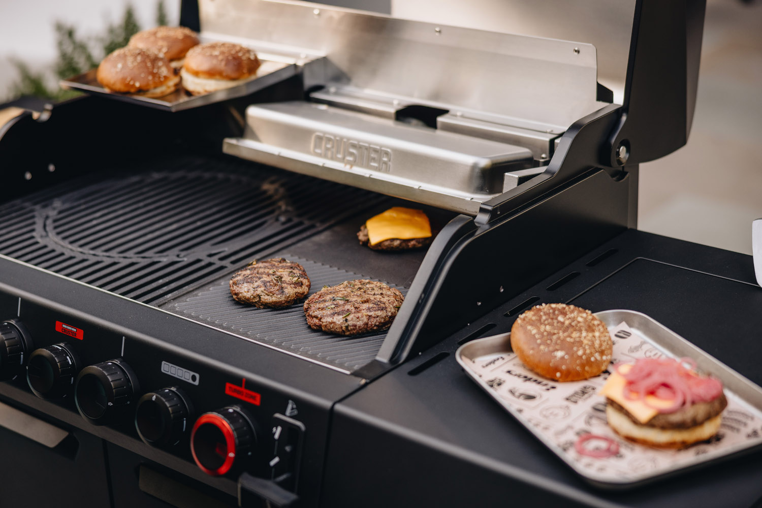 Die praktische Wendeplatte kann beidseitig genutzt werden. Auf der glatten Seite lassen sich kleinteiliges Grillgut aber auch Spiegelei, Pancakes und vieles mehr hervorragend zubereiten.