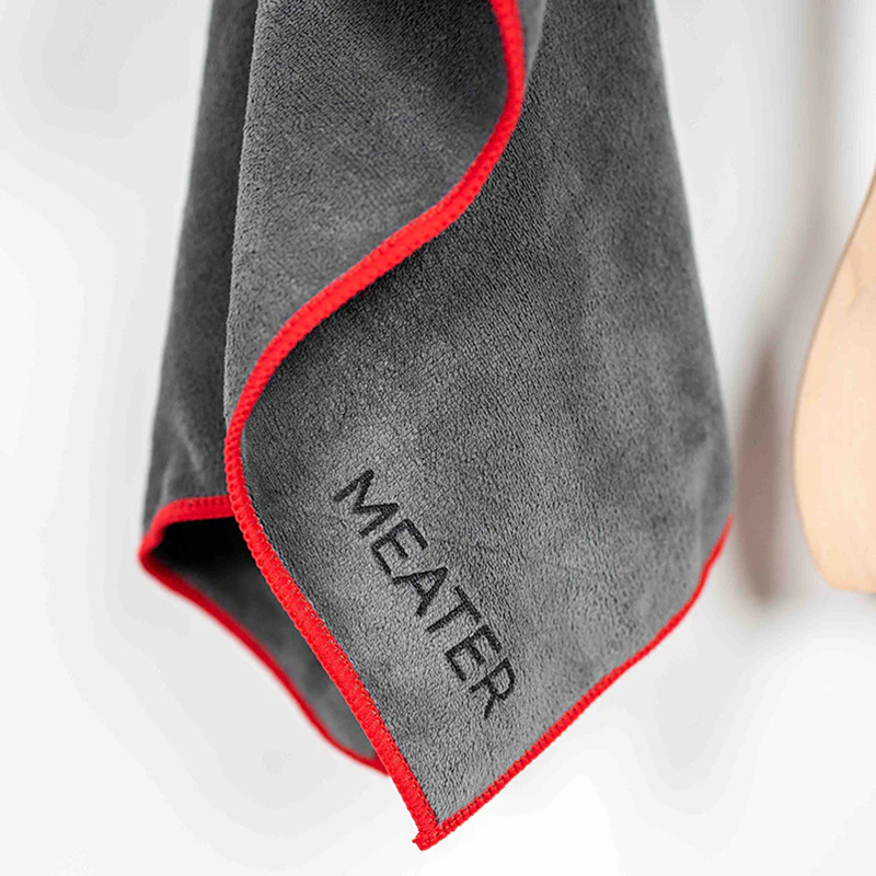 Dank der großzügigen Abmessungen von 59 x 40 cm lässt sich das MEATER Mikrofasertuch noch wesentlich vielseitiger einsetzen und ist ein verlässlicher Begleiter beim Hantieren am Grill, um zwischendurch die Hände abzuwischen oder Fettspritzer auf Edelstahlflächen direkt zu beseitigen. Die samtige Haptik sorgt dabei für ein angenehmes Gefühl und schützt empfindliche Oberflächen vor Kratzern.