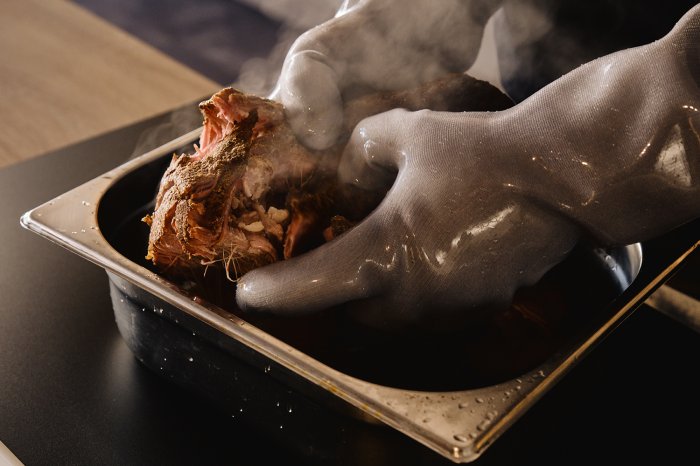 So lässt sich mit den Handschuhen auch schnell mal ein Stück Fleisch beim Zerteilen mit den Händen halten, ein fertig gebackenes Brot aus dem Ofen holen und ein heißer Topf vom Herd nehmen. Die rutschfeste Oberfläche der Silikonhandschuhe sorgt dabei für einen hervorragenden Halt.