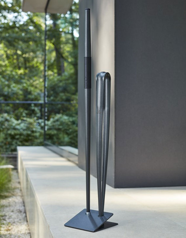 Zur optimalen Aufbewahrung ist ein stabiler Ständer im Set enthalten, in den Blasrohr und Zange eingesteckt werden können. So lässt sich das komplette Set griffbereit direkt neben Ihrem OFYR Grill platzieren.
