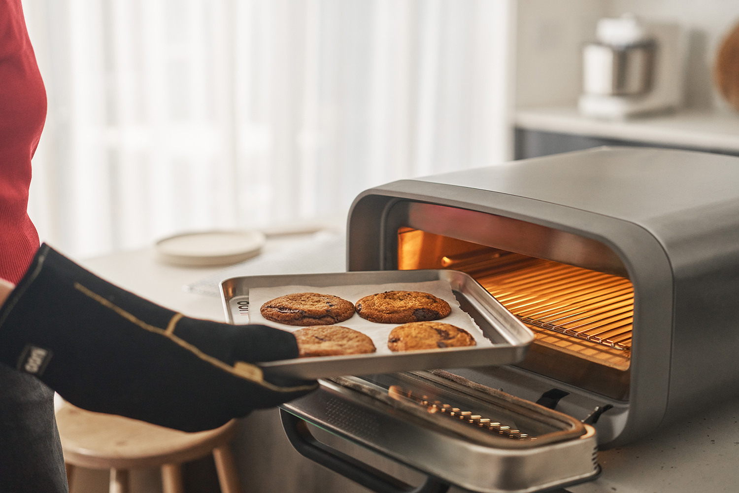 Dazu hat der Ooni Volt 2 ein um 41% größeres Sichtfenster aus hitzebeständigem Glas für einen ungehinderten Blick ins Innere des Ofens bekommen.