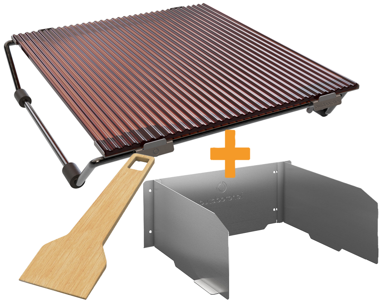 - Zum Platzieren über dem Infrarotbrenner - für noch vielfältigere Zubereitungsmöglichkeiten - inkl. Gratis Zubehör-Paket mit Bambusschaber und Wind- und Spritzschutz