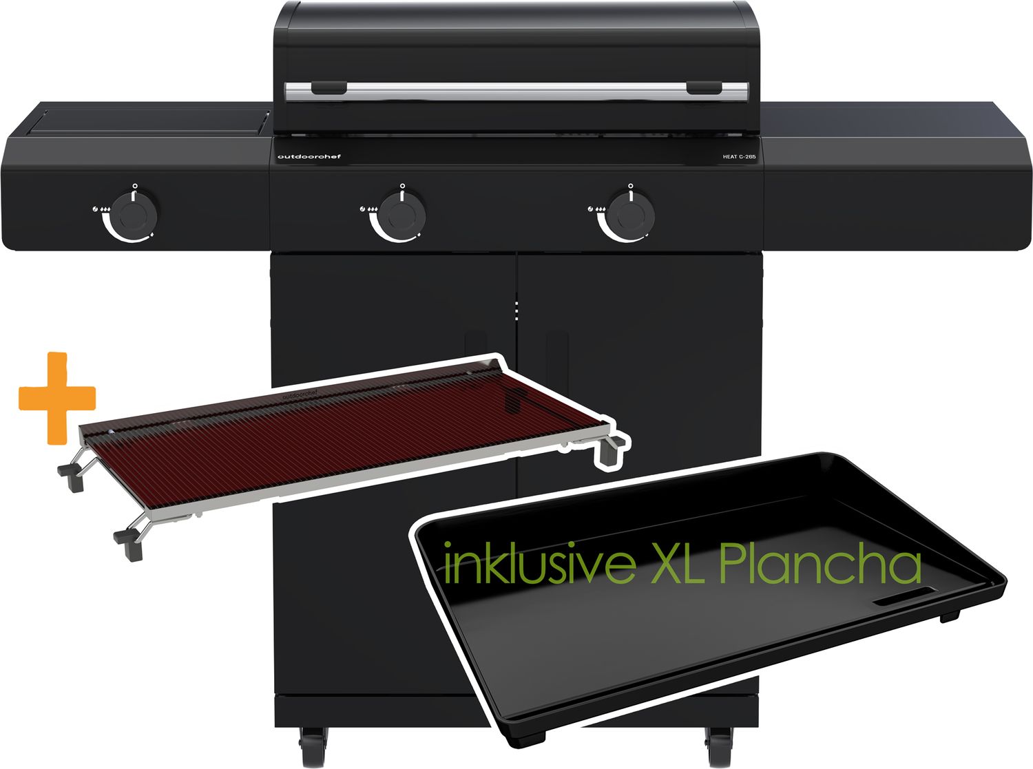 | Artikelbezeichnung: | Outdoorchef Power Grillstation HEAT C-265 mit 2 x Blazing Zone und Seitenkocher - inkl. XL Gusseisen Plancha und Blazinglas® |