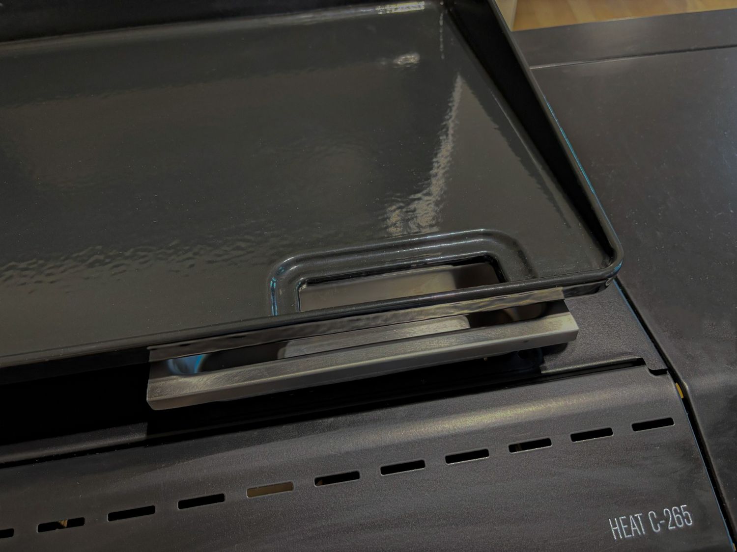 Zum Auffangen von Fett und Flüssigkeiten besitzt die Plancha eine Fettablauföffnung. Passend dazu, ist eine Edelstahl-Fettauffangschale direkt mit im Lieferumfang enthalten, welche in die dafür vorgesehene Aussparung unter der Plancha gestellt wird.