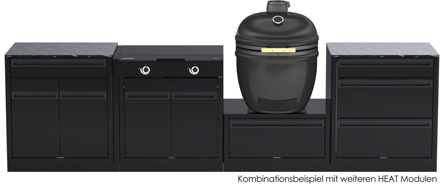 Nutzbar als Standalone oder zusammen mit weiteren HEAT Modulen ist das Kamadomodul inkl. EGG 550 die perfekte Lösung für die elegante und hochwertige Integration eines Keramikgrills in ihre Outdoor Küche.