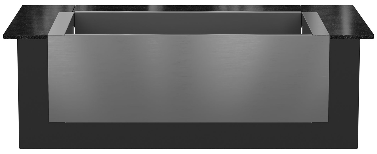 Das Einbauset besteht aus einer Frontblende aus schwarz pulverbeschichtetem Edelstahl, zwei Abdeckungen aus poliertem, schwarzem Granit und allen notwendigen Montagematerialien.