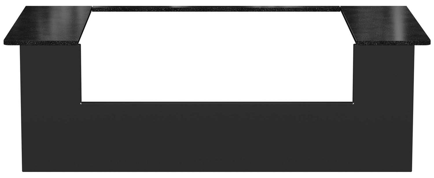 Das Einbauset besteht aus einer Frontblende aus schwarz pulverbeschichtetem Edelstahl, zwei Abdeckungen aus poliertem, schwarzem Granit und allen notwendigen Montagematerialien.