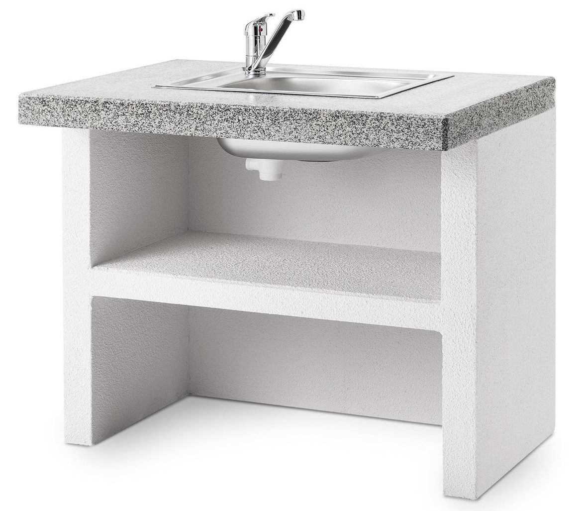 Erstellen Sie sich mit dem Spülenmodul eine ideal ausgestattete Outdoorküche, indem Sie es mit einer weiteren Arbeitsfläche kombinieren oder auch direkt neben dem Grillkamin montieren. Der Unterschrank der Spüle kann optional mit separat erhältlichen Türen verschlossen werden. Bitte beachten Sie, dass die Türen nicht im Lieferumfang enthalten sind.