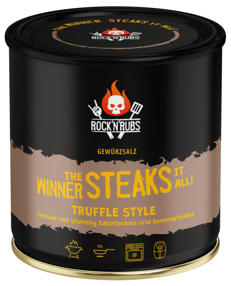 Rock'n Rubs - The Winner steaks it all - Truffle Style ist feinstes Trüffelsalz mit getrocknetem Sommertrüffel und macht ihr Steak zum absoluten Gourmet-Geschmackserlebnis.