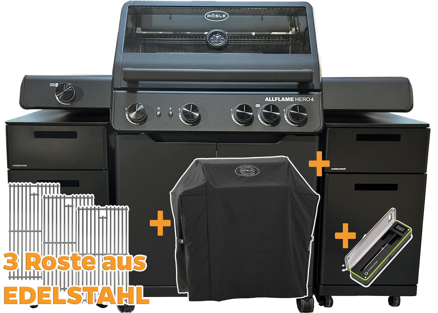 | Artikelbezeichnung: | Rösle Gasgrill ALLFLAME Hero 4 - Smart-Edition mit Easy Check Wireless Thermometer + 2x Premium Grillschrank (GRILLFÜRST EDITION) |