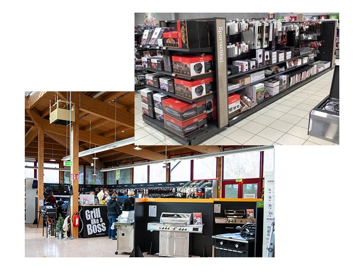 Das Maximale ausserhalb unser eigenen Filialen sind unsere Shop-in-Shop-Welten bei 7 Hagebau Märkten in Bad Wildungen, Stadthagen, Meppen, Melk (AT), Gägelow (ab 2026), Warstein (ab 2026), Meppen und bei Dehner Eichenzell bei Fulda. Auf bis zu 200 m² finden Sie hier fast die gesamte Produktvielfalt unserer Eigenmarke Grillfürst Grills und Grillzubehör, sowie Dutch Oven, Reiniger, Räucherprodukte bis hin zu einer großen Auswahl weiteren Zubehör Artikeln.