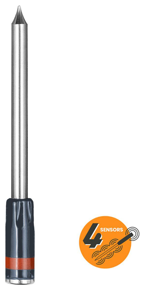 - Messfühler mit 4 Sensoren für Kerntemperatur (bis zu 100 °C) und Umgebungssensor (bis zu 310 °C)