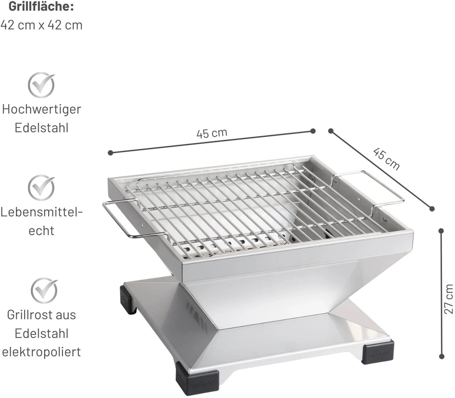 | Artikelbezeichnung: | Thüros T3 Holzkohle Tischgrill Edelstahl 42x42 cm |