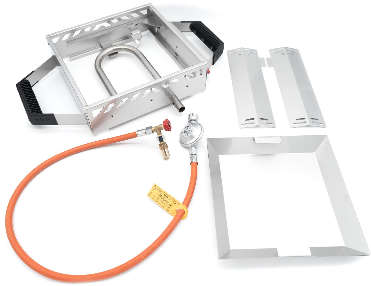 1x Thüros Gasaufsatz für T2 Holzkohlegrill inkl. Flammschutzbleche, Fettauffangschale, Gasschlauch, Druckminderer und Regulierventil