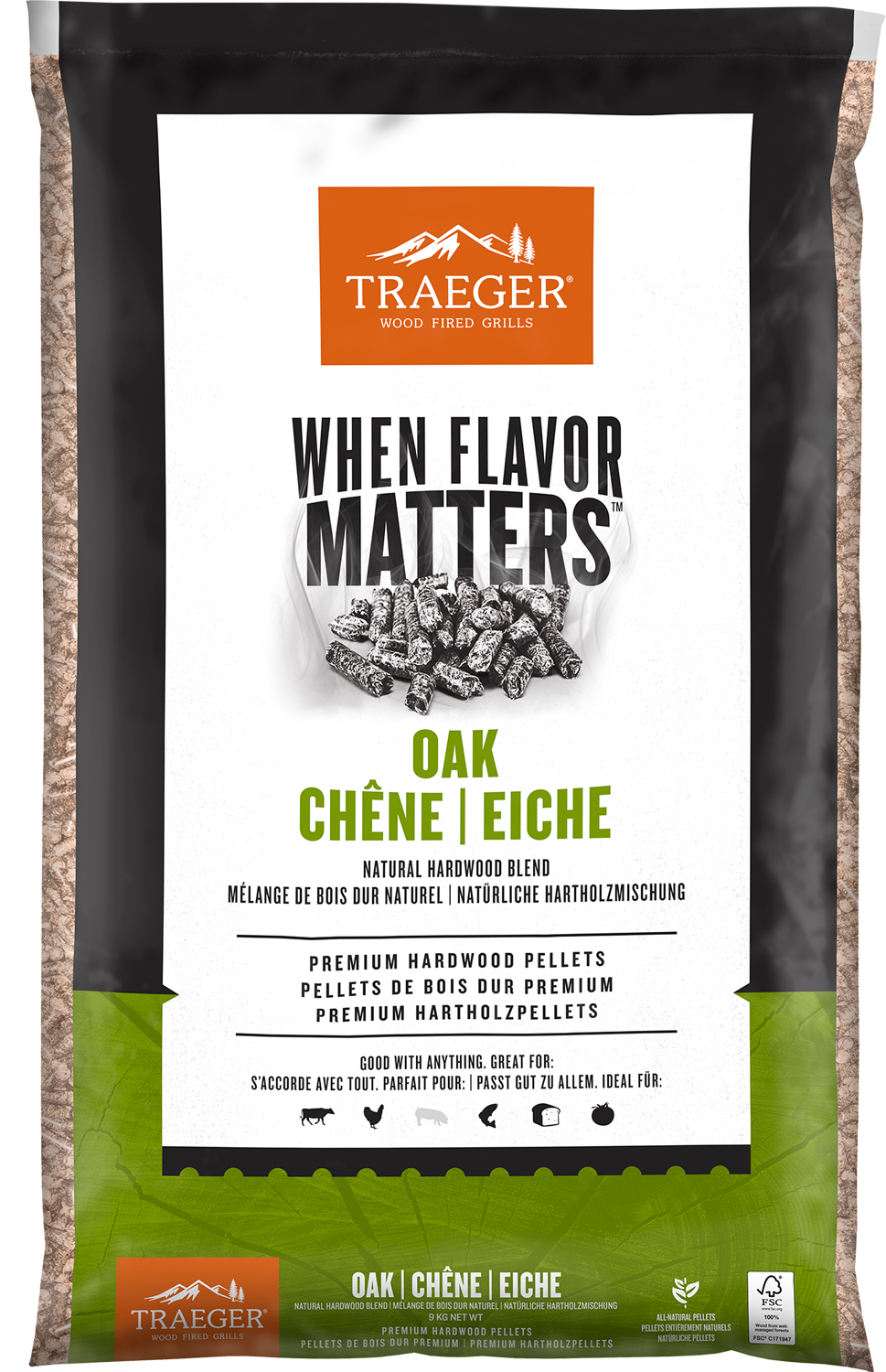 Traeger Hartholz Pellets Eiche für ein mild-nussiges Raucharoma