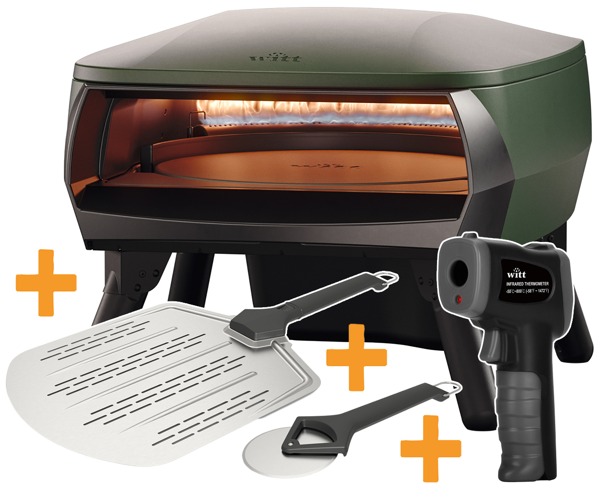 | Artikelbezeichnung: | Witt Pizzaofen Piccolo Rotane 13" - matt grün - inkl. Pizzaschieber, Pizzaschneider & Infrarot Thermometer |