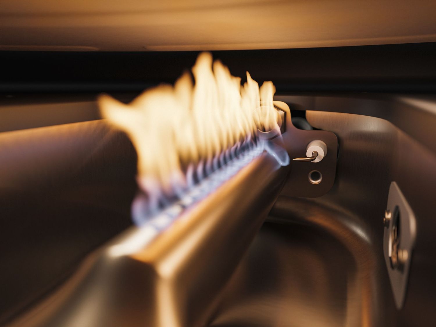 Der Witt Etna Rotante begeistert mit seinem extra starken U-Brenner mit 8,5 kW Leistung, der den Ofen auf beeindruckende 500 °C aufheizt – und das in nur 15 Minuten. Die doppelwandige Isolierung sorgt dabei nicht nur für eine langanhaltend konstante Hitze, sondern auch für einen besonders effizienten Gasverbrauch. Ein zusätzlicher Booster-Brenner unterhalb des Pizzasteins hält den Stein immer optimal auf Temperatur. So wird die Pizza nur etwa 90 Sekunden perfekt durchgebacken. Und auch mehrere Pizzen hintereinander gelingen mühelos.