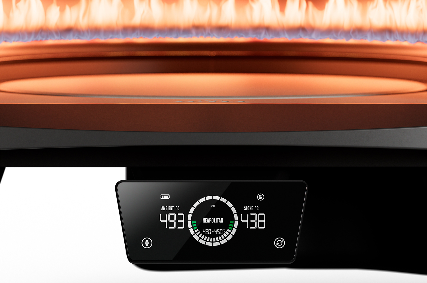 Das Herzstück des Witt Etna Rotante Control ist das brillante Touch-Display, das nicht nur eine präzise Regelung, sondern auch eine Live-Überwachung der Temperatur ermöglicht. Mehrere Sensoren messen gleichzeitig die Stein- und Garraumtemperatur und liefern dir jederzeit exakte Werte. So lässt sich die Hitze perfekt anpassen.