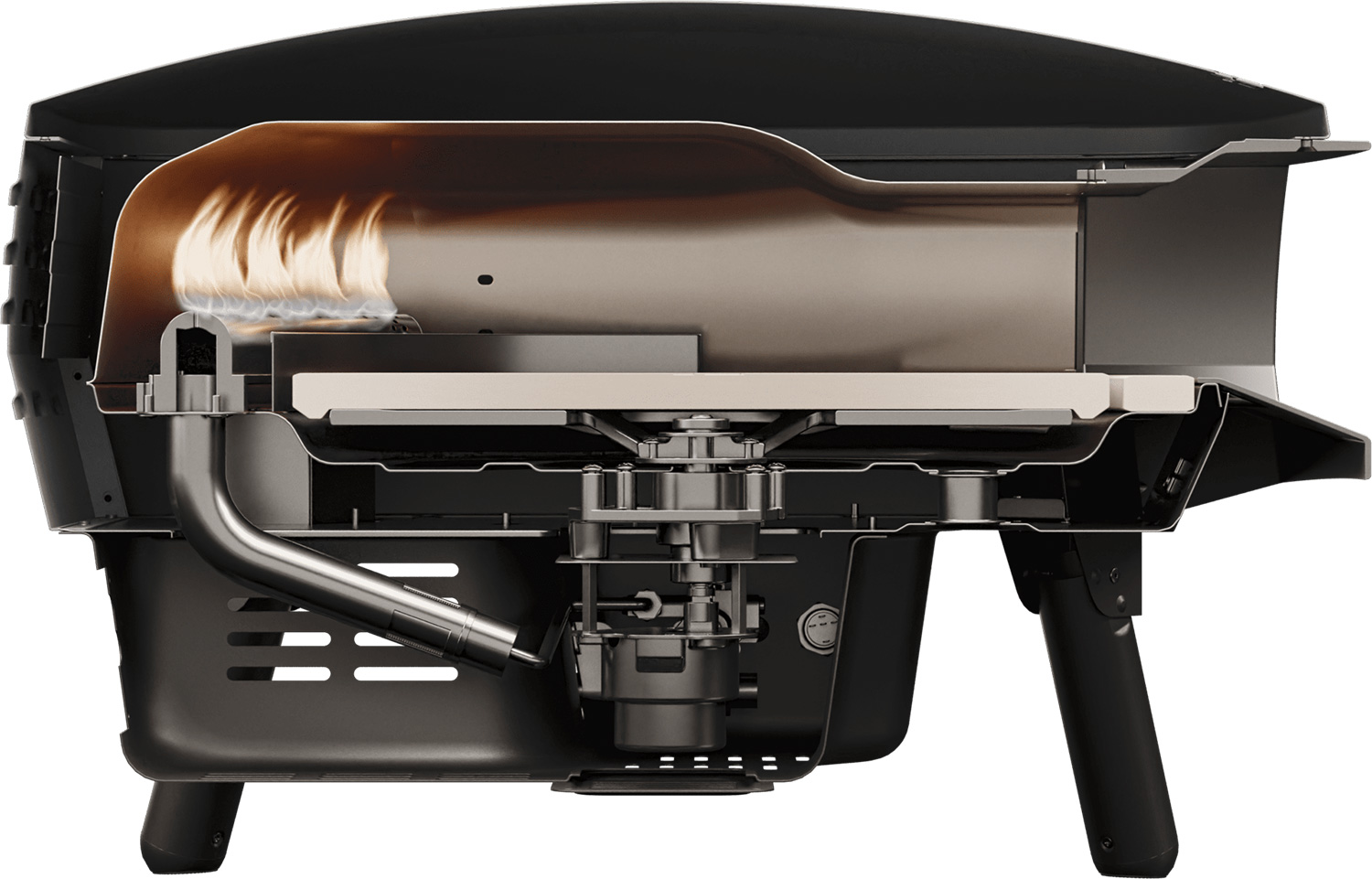 Der leistungsstarke C-Brenner heizt den Ofen in nur 15 Minuten auf bis zu 500 °C auf. Durch den doppelwandig isolierten Garraum werden Hitzeverluste minimiert und der Gasverbrauch optimiert. So gelingen perfekt gebackene Pizzen in nur 60 bis 90 Sekunden mühelos.