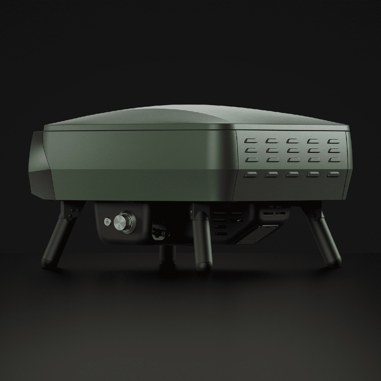 Der matt-grüne, pulverbeschichtete Korpus ist besonders edel und hochwertig, während die Aluminiumbeine mit Anti-Rutsch-Füßen für einen sicheren Stand sorgen und sich zum platzsparenden Verstauen einfach einklappen lassen. Ein durchdachtes Qualitätsprodukt, das in jeder Outdoor-Küche glänzt. Von den Maßen ist der Piccolo Rotante kompakter gehalten, als der Etna Rotante Pizzaofen.