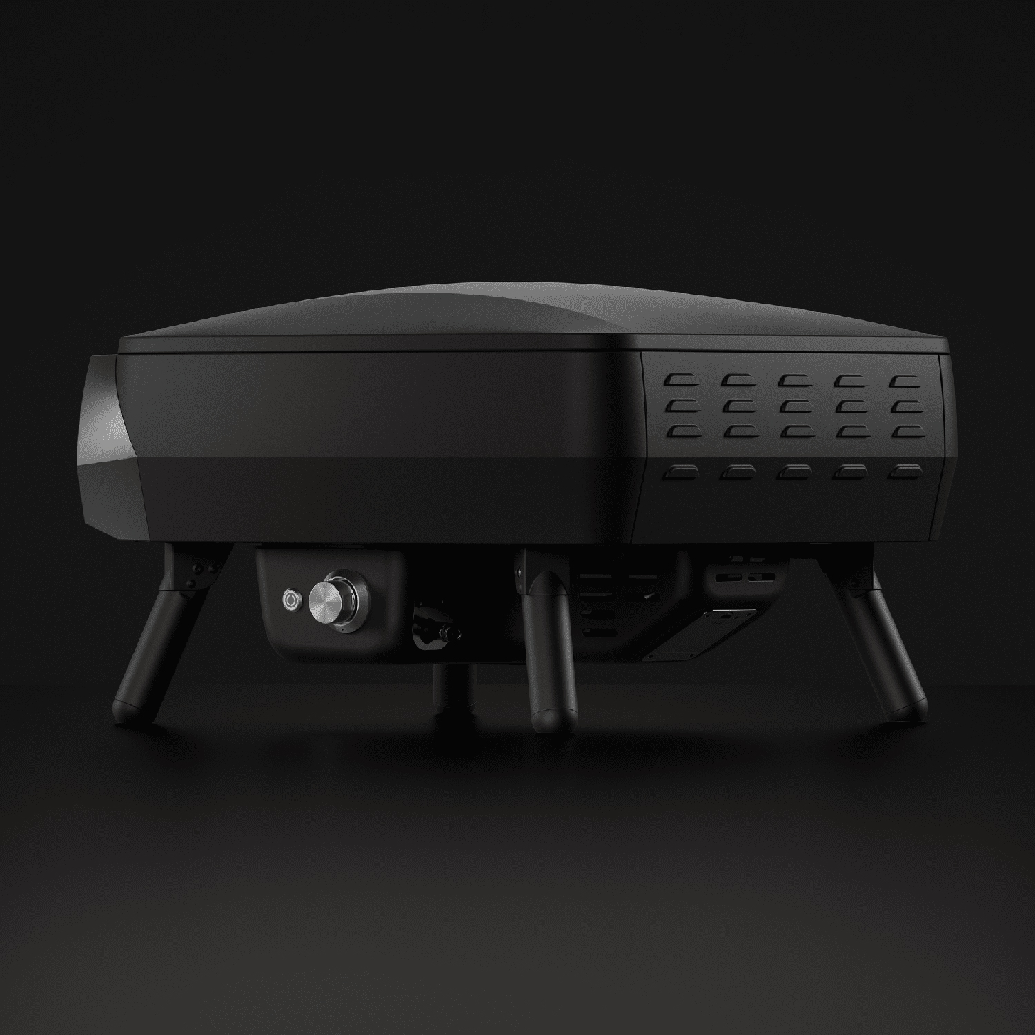Der matt-schwarze, pulverbeschichtete Korpus ist besonders edel und hochwertig, während die Aluminiumbeine mit Anti-Rutsch-Füßen für einen sicheren Stand sorgen und sich zum platzsparenden Verstauen einfach einklappen lassen. Ein durchdachtes Qualitätsprodukt, das in jeder Outdoor-Küche glänzt. Von den Maßen ist der Piccolo Rotante kompakter gehalten, als der Etna Rotante Pizzaofen.