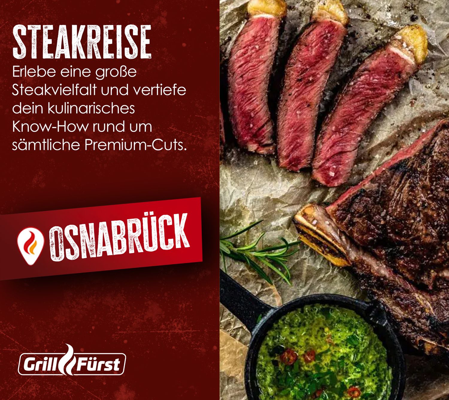 Grillfürst Grillkurs - Steakreise - Erlebe eine große Steakvielfalt - Donnerstag, 02.07.2026 - 17:00 Uhr - Osnabrück